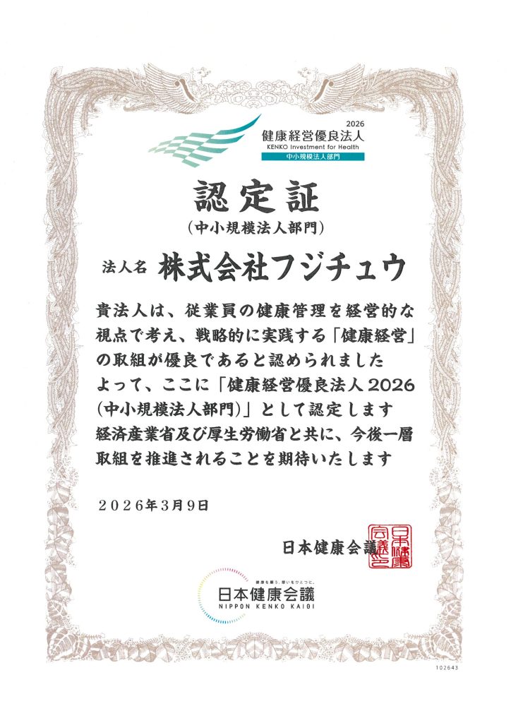 当社では、社員の健康維持・増進を目的とした「健康経営」の取り組みを継続しており、8年連続で健康経営優良法人の認定を取得しております。